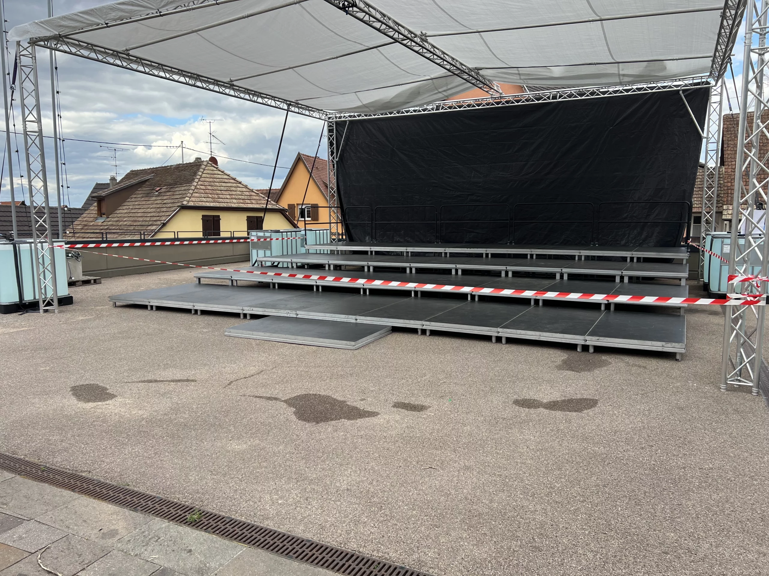 Pour la 4ᵉ édition du Pfaff Music Band, nous avons installé une scène couverte de 8 m de longueur sur 9 m de largeur, soit une surface totale de 72 m².
